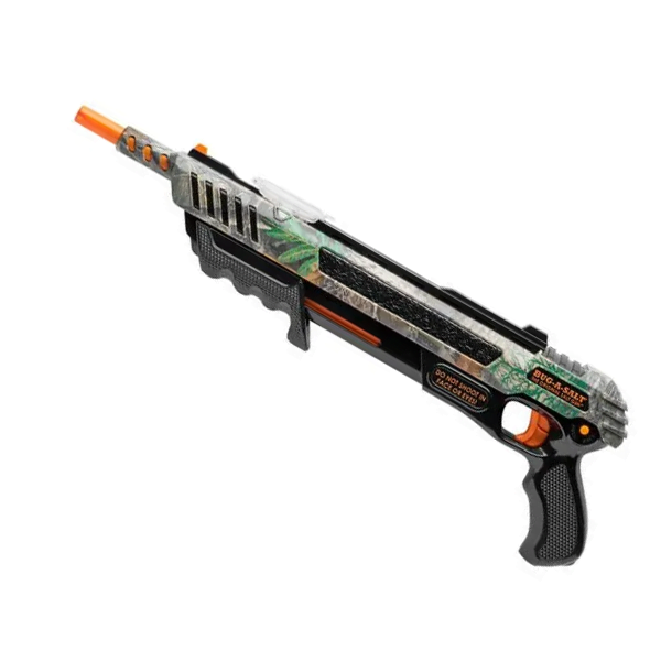 Het doorzichtige zoutreservoir bovenop het zoutgeweer maakt het gemakkelijk om te zien wanneer je moet bijvullen. Het reservoir is eenvoudig te vullen met keukenzout, waardoor je altijd klaar bent voor actie. De voorgevormde pump-action greep onderaan het vooreind zorgt ervoor dat je snel en eenvoudig kunt herladen, zodat je zonder onderbreking kunt blijven schieten.